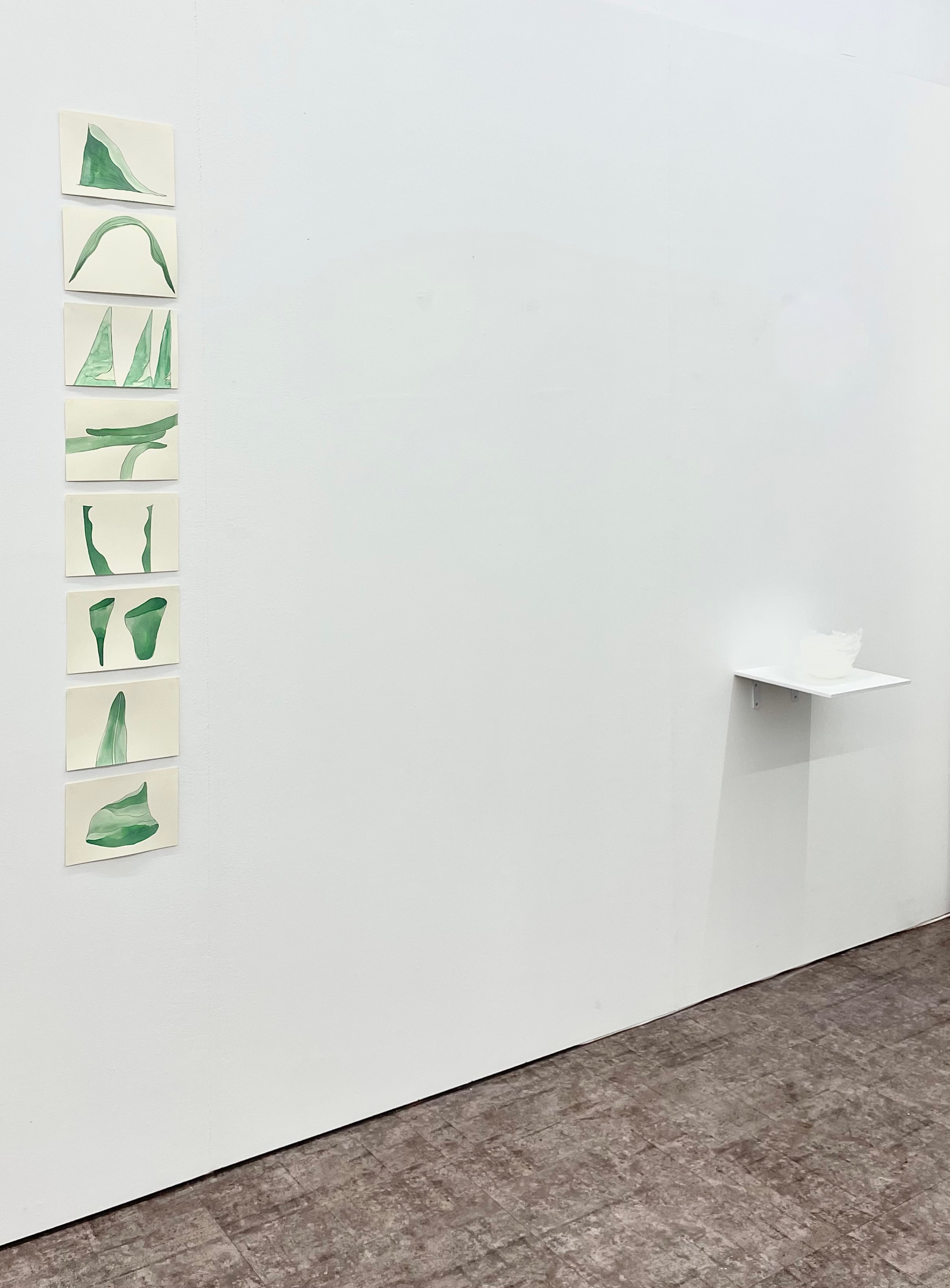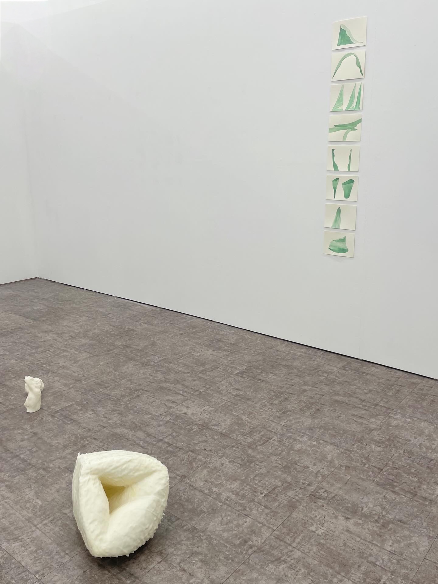 따라서 이번 전시는 ‘완결되지 않은 전시’로 자리한다. 작가는 전시장에 머무르며 매일 걷고, 낯선 공간에 몸으로 적응하는 과정을 기록한다. 전시장에는 이러한 적응을 위한 오브제의 스케치와 지금의 상태를 담아낸 사물들이 놓인다. 그것들은 불안정하고 유연하며, 능숙하지 않은 형상으로 제시된다. 언제든 다른 형태로 변화할 수 있는 것들, 다시 익히고 다시 적응하는 지점에서 작동하는 것들이다. 전시장은 마치 영원히 완성되지 않는 캔버스처럼, 그 안에서 움직이는 몸과 상호작용하며 끊임없이 장소의 풍경을 바꿔 나간다.